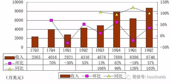 易恒健康2019年第二季度的营收为8746万美元,较上年同期的4316万美元增长103%,较上一季度的6386万美元增长37%。