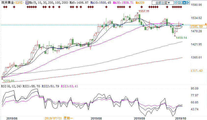 10月6日,黄金分析师James Hyerczyk指出,上周疲软的美国经济数据支撑金价收复1500美元,本周需关注美联储主席鲍威尔讲话、FOMC会议纪要和美国9月CPI数据。若CPI数据恶化将支撑金价,但若CPI数据稳固,美联储释放的信息不那么鸽派,则可能施压金价。