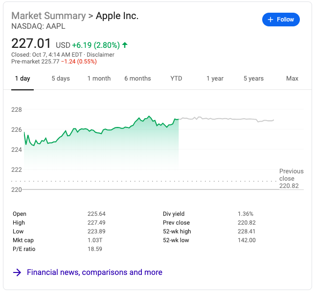 随后的一年多时间里,苹果市值在股价变动中颇有起伏,但往往在跌落之后再次回到一万亿美元之上——截止雷锋网发稿(目前苹果股价停留在 2019 年 10 月 4 日周五美股收盘),由 Tim Cook 掌舵的苹果的市值依然停留在一万亿美元之上。