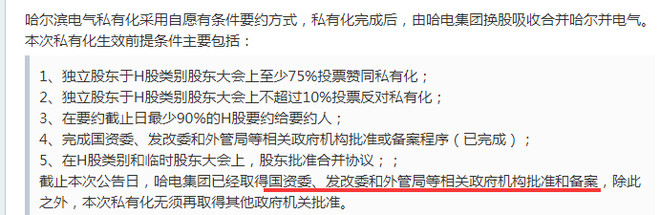 这里我们就可以看到哈尔滨电气的私有化居然是要90%H股要约给要约人,这个私有化的难度就增加了好多了。