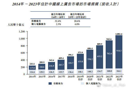 受到经济低迷的影响,整体广告包括线上广告增速在18年就开始下滑,19年下滑更为明显。