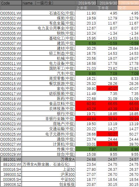 1.截止9月底食品饮料、农林牧渔、非银金融三个行业板块涨幅最大,这些无一例外都是一季度表现好的板块,行情得以延续和漂移。
