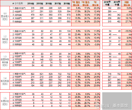 港股与燃气供应相关的企业不少,我们选取了规模较大的几家,中国燃气、华润燃气、新奥能源、香港中华燃气、北京控股,作为这次基本面比较的对象。