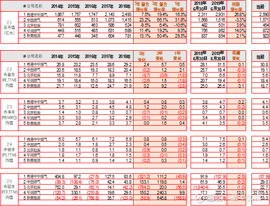 1. 前面说过,香港中华燃气和北京控股的业务更多元化一些,所以估值上与其他三家差异较大。