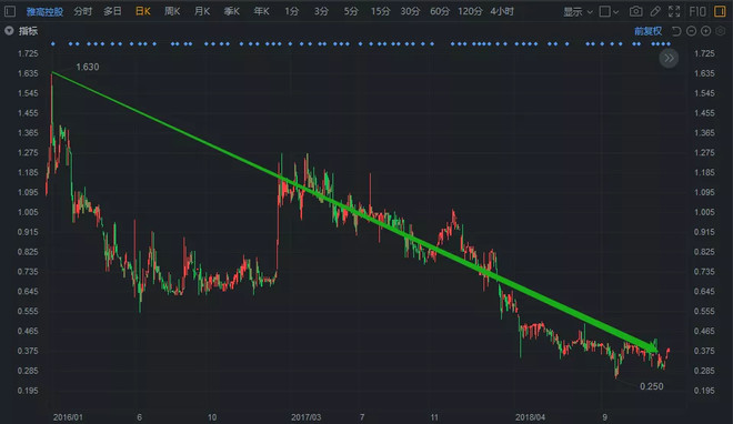 雅高控股2016-2018年股价图(前复权)