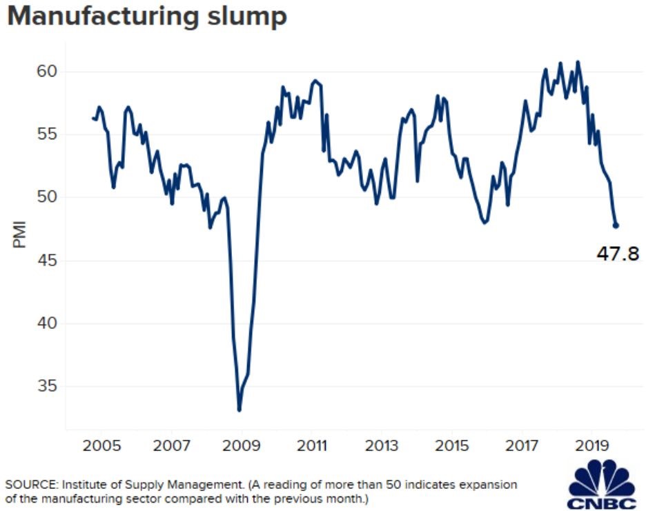 1,10月1日美国公布9月ISM4制造业PMI数据5,是2009年6月以来最低水平。美国经济衰退风险再度升温。