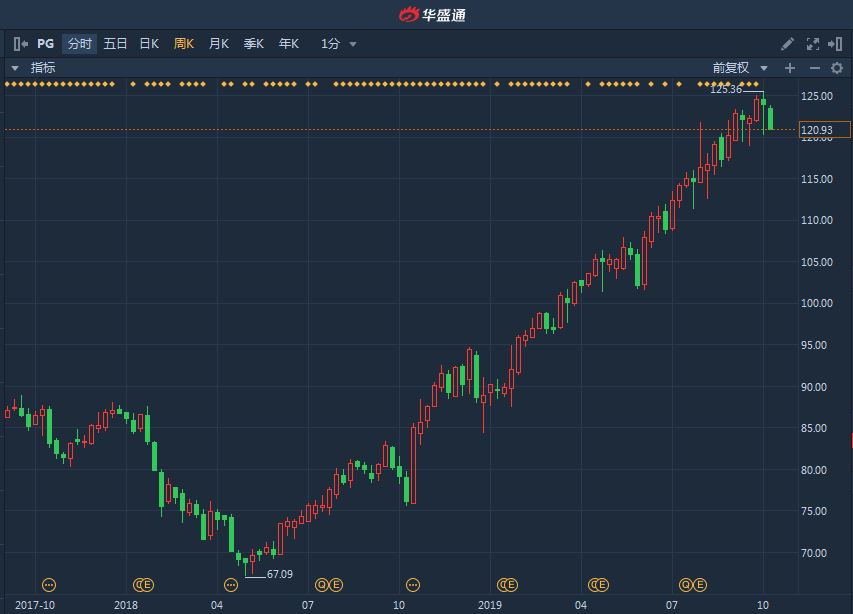 我们看好的一些避险股股价也正接近创纪录高位,对于那些想要在这种不确定的时期进行防御的投资者来说,所剩选择不多。以全球最大的消费品公司宝洁 (NYSE:PG)为例。
