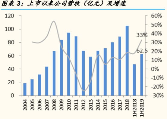 2015-2018 年,李宁营收从70.89亿元上升至105.11亿元,净利润由0.14 亿元上升至7.15 亿元。最新的2019年上半年,李宁实现收入62.5 亿元,同比增长33%;扣除一次性与经营无关的损益后净利润为 5.61 亿元,同比增长109.1%。从业绩和市场上股价的优秀表现来看,李宁走出了困境。