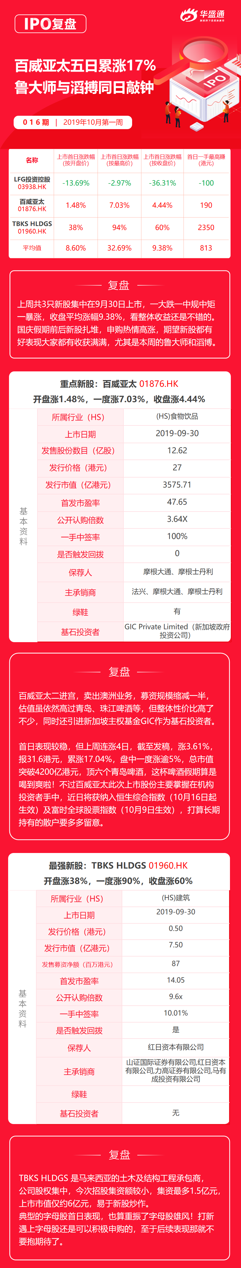 一周IPO复盘 | 百威亚太五日累涨17%,鲁大师与滔博同日敲钟