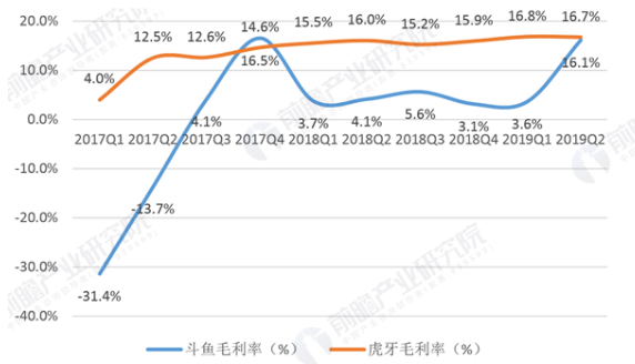 斗鱼与虎牙盈利差距的缩小,与毛利率水平的趋同走势密不可分。根据财报数据,2019年一季度之前,斗鱼与虎牙之间的毛利率的差距为一直较大,但到2019年第二季度,二者毛利率的差距仅为0.6%。