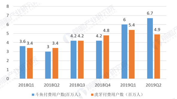 斗鱼的直播收入占营业收入的比重很大。2018年斗鱼直播收入增长率一直呈下降的趋势,但在2019年实现了反转。2019年第一季度,斗鱼付费用户数量开始超过虎牙,且数量差距在不断拉大,实现直播收入快速增长,这也是斗鱼在2019年成功实现盈利的主要原因。