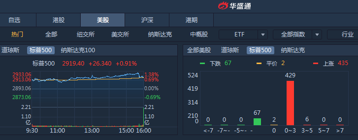 美联储纪要发布后10月降息概率提升,周三美股高开高走并最终收涨。标普500指数涨0.91%,纳指涨1.02%,道指涨0.70%。