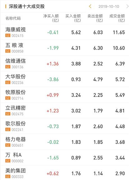 深股通净卖出大华股份3.86亿、万科A1.65亿,净卖出五粮液1.99亿。
