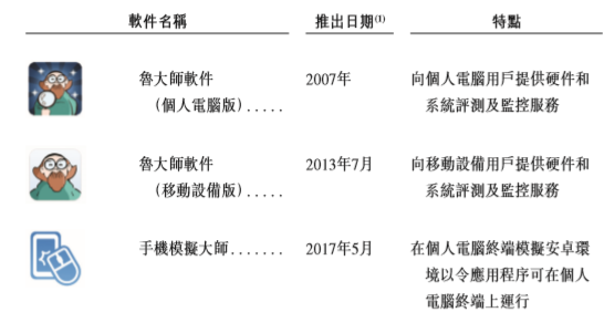 根据弗若斯特沙利文的数据,截至2018年12月31日止年度,就个人计算机及移动设备而言,鲁大师软件的平均月活用户分别为5930万人及390万人。截止4月,鲁大师旗下7款软件中,月活千万用户的软件为鲁大师软件(个人电脑版)、手机模拟大师、DualSpace。