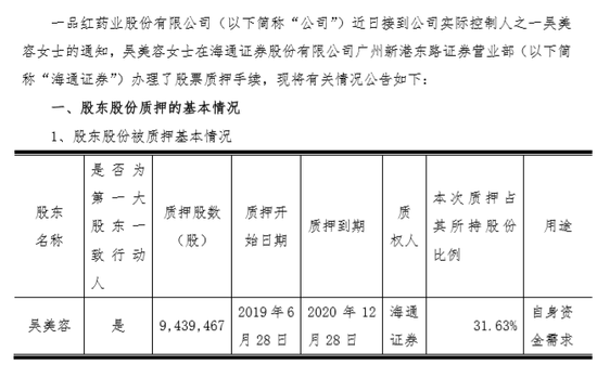 认购金额最大的吴美容是一品红公司的实控人之一,据后者上市公司披露,今年7月份,吴美容为了融资,质押公司股份943.95万股,以收盘价38.47元进行估算,质押股票市值约为3.63亿元。