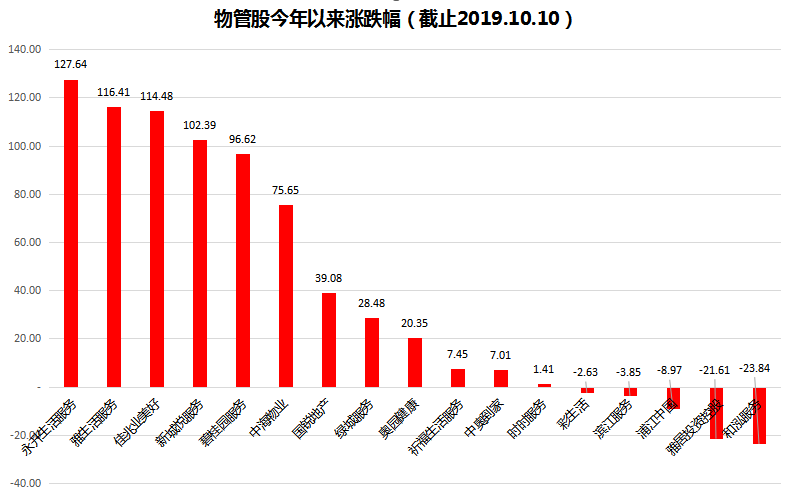近两年,赴港上市的物管企业就有十几家,其中不乏中海物业、碧桂园服务、雅生活、彩生活等母公司北京强大的物管企业。而笔者也注意到,这些物管公司在港股市场的股价表现非常强势,包括在2019年大市走弱的情况下仍有不错涨幅。如永升生活服务、雅生活、佳兆业美好以及新城悦四只物管股都有超过100%年涨幅的表现。