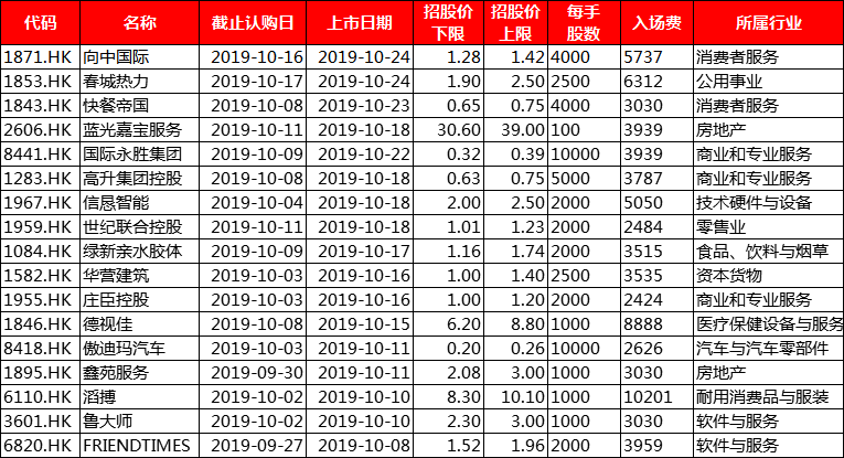 错过了鲁大师和鑫苑等暴涨的机会不要紧,截止目前拟订在港交所上市的公司有17家,相较于9月的6家有了大幅提高。比如将于10月18日上市的蓝光嘉宝服务也像鑫苑一样是物业管理股,根据中指院的资料,截至2018年12月31日,该公司于中国西南地区及四川省的在管总建筑面积分别约为4160万平方米及3340万平方米,这使公司于截至该日期于两个地区的在管建筑面积在2019中国物业服务百强企业中分别名列第四位及第一位。蓝光嘉宝会像鑫苑一样迎来强劲的首发走势吗,让我们拭目以待。