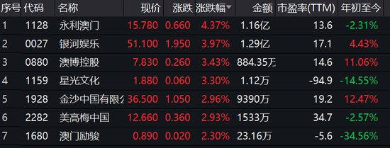 新浪港股讯 10月14日消息,澳门将打造离岸纳斯达克,广东概念、博彩概念股集体爆发。其中,博彩股方面,永利澳门涨4.37%,银行娱乐大涨3.97%,澳博控股涨3.43%,金沙中国涨2.96%,美高梅好难过涨2.93%。