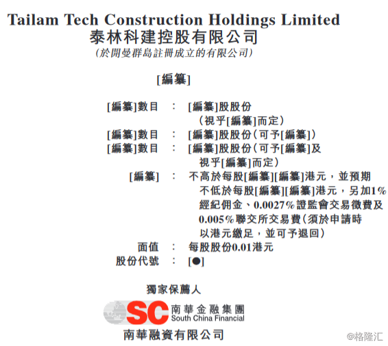 格隆汇10月14日丨IPO那点事(ID:ipopress)消息,港交所信息显示,10月13日,泰林科建控股有限公司递交港股主板上市申请,显示独家保荐人为南华金融集团。