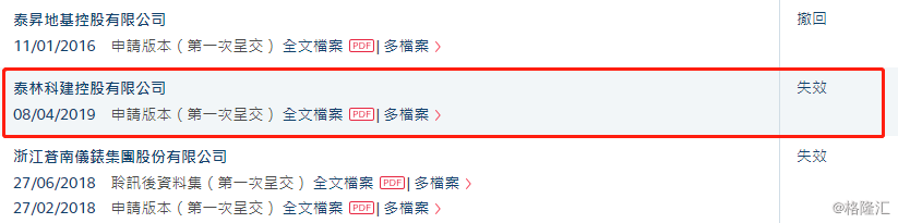 值得注意的是,泰林科建控股曾于2019年4月8日递交过港股上市申请,目前显示已经失效。