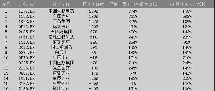 过去5年,港股市场上也有许多快速增长的行业或者公司,股价上涨幅度很大,给投资者带来了巨大的回报。比如像医药行业: