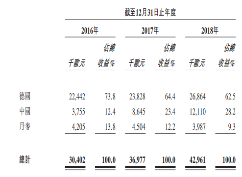 财务方面,公司也是地地道道的德国公司,公司的主要收入来自德国地区,丹麦和中国地区相对总收入占比较少。