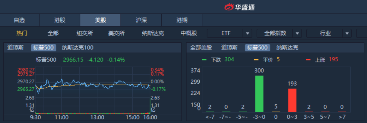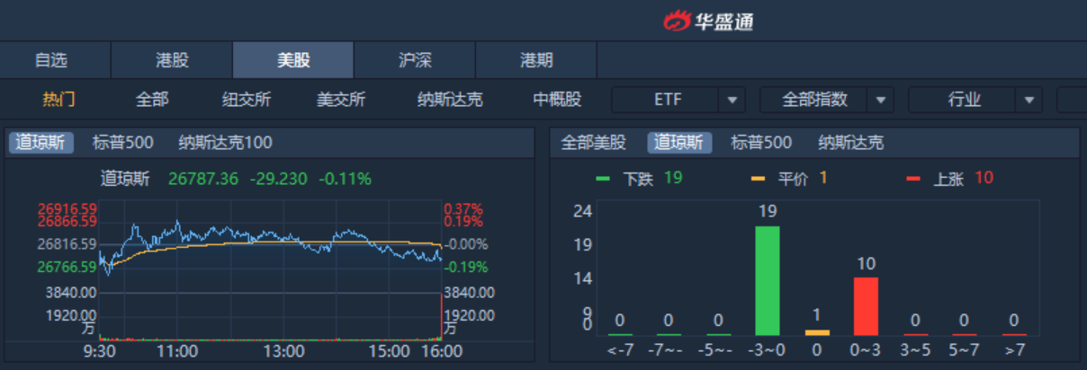 周一,美股走势震荡收盘小幅下跌,截至收盘,道指跌0.11%;标普500跌0.14%;纳指跌0.10%。
