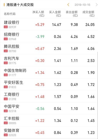 港股通资金今日净流入港股16.52亿港元。今日净买入建行5.29亿港元,工行1.48亿港元,中生制药1.34亿港元。