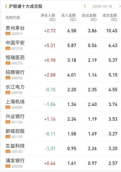 北上资金今日净流入A股44.23亿元,沪股通净买入中国平安5.31亿,净买入贵州茅台2.72亿,净买入招商银行2.88亿。