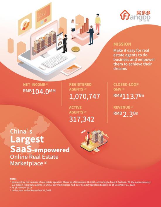 招股书显示,房多多致力于“帮经纪商户简单做生意”,通过移动互联网技术、云技术和大数据,实现房地产交易的关键资源,包括房、客、资金和交易数据的在线聚合,赋能经纪商户在线上开展业务,从根本上改变中国房地产经纪商户的作业方式。