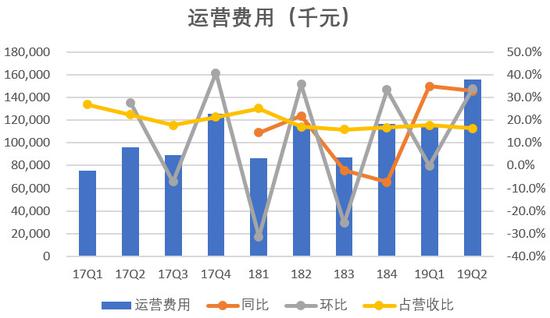 2019年二季度,房多多运营费用为1.56亿元,去年同期为1.17亿元,同比增长32.9%,较一季度的1.16亿元,增长33.8%。