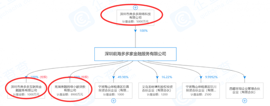 企查查显示,2015年,房多多在深圳设立了金融服务子公司——深圳前海多多家金融服务有限公司。穿透股权结构发现,深圳市房多多网络科科技有限公司是其大股东,100%持股。
