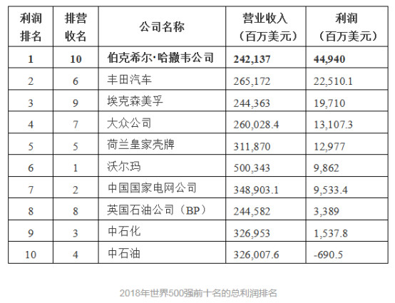 更为重要的是,伯克希尔·哈撒韦的利润高达449.40亿美金,折合人民币3037亿人民币,在500强企业前十强中排名第一。