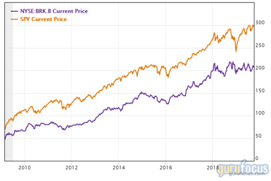 究竟罗尔夫对于巴菲特的“指控”是否有真凭实据呢?我们来看看数据统计,在从2009年3月开始的长达十年的牛市中,伯克希尔哈撒韦的股票表现确实落后于标准普尔500指数。罗尔夫指出,截至9月30日,BRK.B总涨幅为269%,同期BRK.A总涨幅为323%,均跑输标普指数的334%。