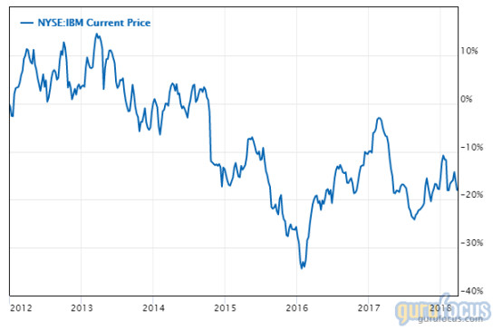 首先是2011年四季度披露数据,当时巴菲特持有107亿美元的IBM股票,到了2018年初,股神全部清仓了IBM,而IBM当时的股价与他开始投资时相比,跌幅超过了20%。