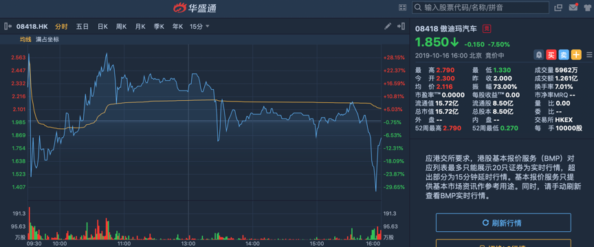 今日的主角傲迪玛汽车,不仅在10月14日一日暴涨近240%,更是创下3天暴涨7倍的记录。截至收盘,傲迪玛汽车一度大跌超30%后深V反弹,最终收跌7.5%。那么,傲迪玛汽车的基本面到底如何,目前是不是崩盘的前奏呢?