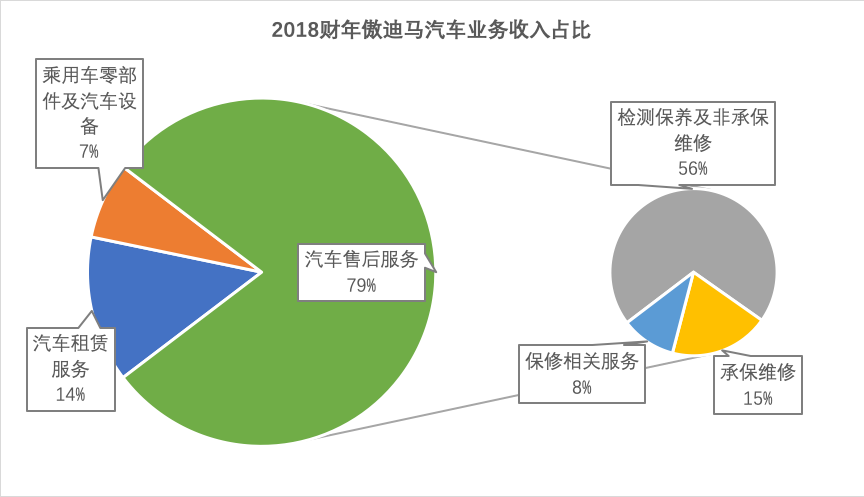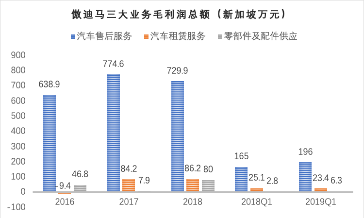 在三项业务中,傲迪玛汽车的核心业务是汽车售后服务,按收入算2016、2017、2018分别占总营收92.5%、85.8%、79.3%。