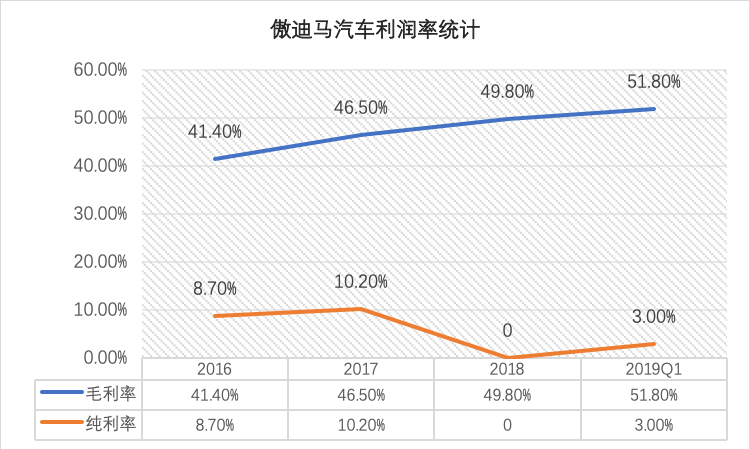 盈利能力角度看,傲迪玛汽车的毛利率水平较高,并在2019年一季度创下51.8%的新高;然而公司的纯利率较低,其中2018年因非经常损益录得亏损,而2016、2017两个正常年份时期的纯利率水平也仅为10%左右,综合看公司并不具备高水平的利润率。