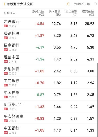 港股通资金今日净流入港股17.01亿元。今日净买入建行4.56亿港元,腾讯1.87亿港元,新鸿基地产1.62亿港元。