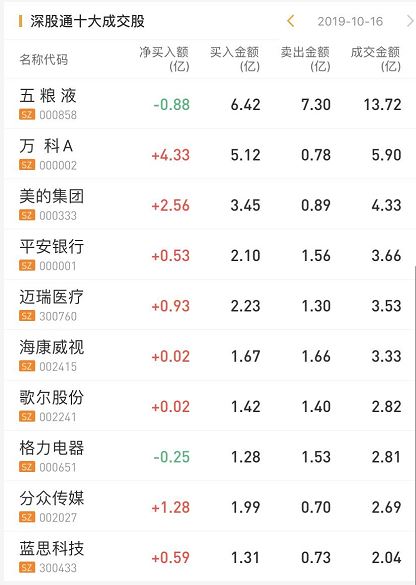 深股通净买入万科A4.33亿,净买入美的集团2.56亿,净买入分众传媒1.28亿。