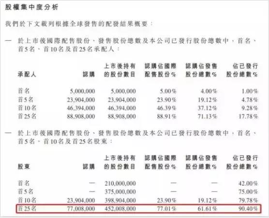如果没有产生回拨,那即是代表绝大多数流通股落入少数人手中,那么炒作也就更加容易。以近期星宇控股(2346.HK)为例,公开发售仅录得10.38倍的超额认购,导致背后筹码非常集中,首25名股东已持有公司逾90%股权,股权集中自然对股价有帮助,加上当时的稀土概念,股价一度涨近90%。