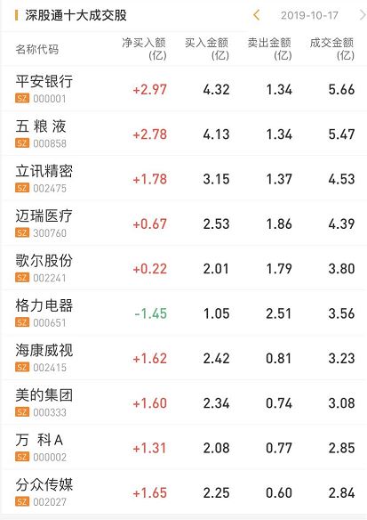 深股通净买入平安银行2.97亿、五粮液2.78亿、立讯精密1.78亿元。