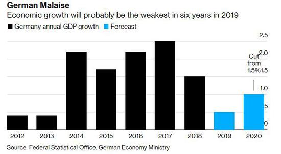德国政府周四下调了2020年的经济增长预期,作为欧洲最大的经济体,德国预计全球需求减弱、英国退欧和贸易争端的影响将持续到明年。