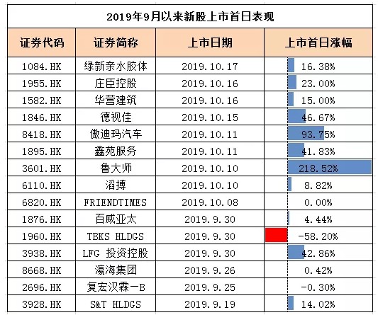 数据显示,9月份之后上市的新股中,仅有2只新股上市首日出现下跌。