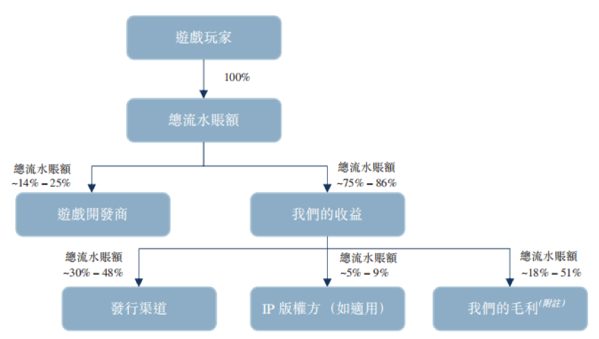 公司与第三方游戏开发商紧密合作,而绝大部分开发商的业务基地位于中国。公司按照一套标准化程序挑选将获授权代理的游戏。截至2019年6月30日,公司与80名游戏开发商订有有效的游戏代理协议,根据协议,游戏开发商将收取游戏总流水账额的14%至25%。