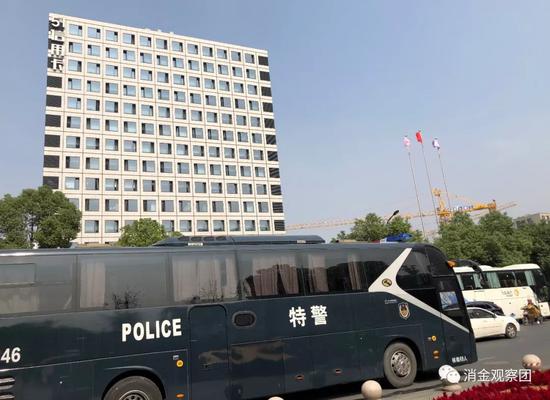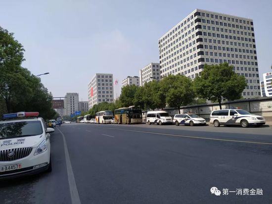 据消金观察团报道,51信用卡位于西溪首座的紫霞街上,停放了数十辆浙江牌照的警车。51信用卡所在办公楼一楼进出口,也有特警把守。