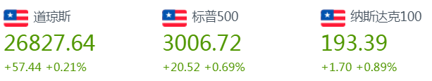 市场关注本周美股密集财报及英国脱欧进展,周一美股三大股指集体高开,均逼近历史新高。收盘,道指涨0.21%,标普500涨0.69%,纳指涨0.91%。美国大型科技股及中概股多数收涨。