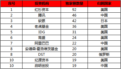 红杉资本摘得投资冠军宝座,腾讯紧随其后
