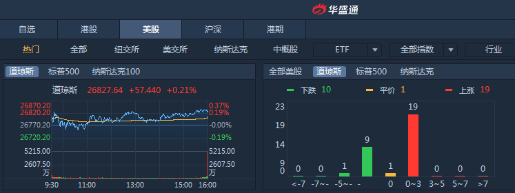 周一美股三大股指均逼近历史新高。收盘道指涨0.21%,标普500涨0.69%,纳指涨0.91%,市场关注本周美股财报及英国脱欧进展。
