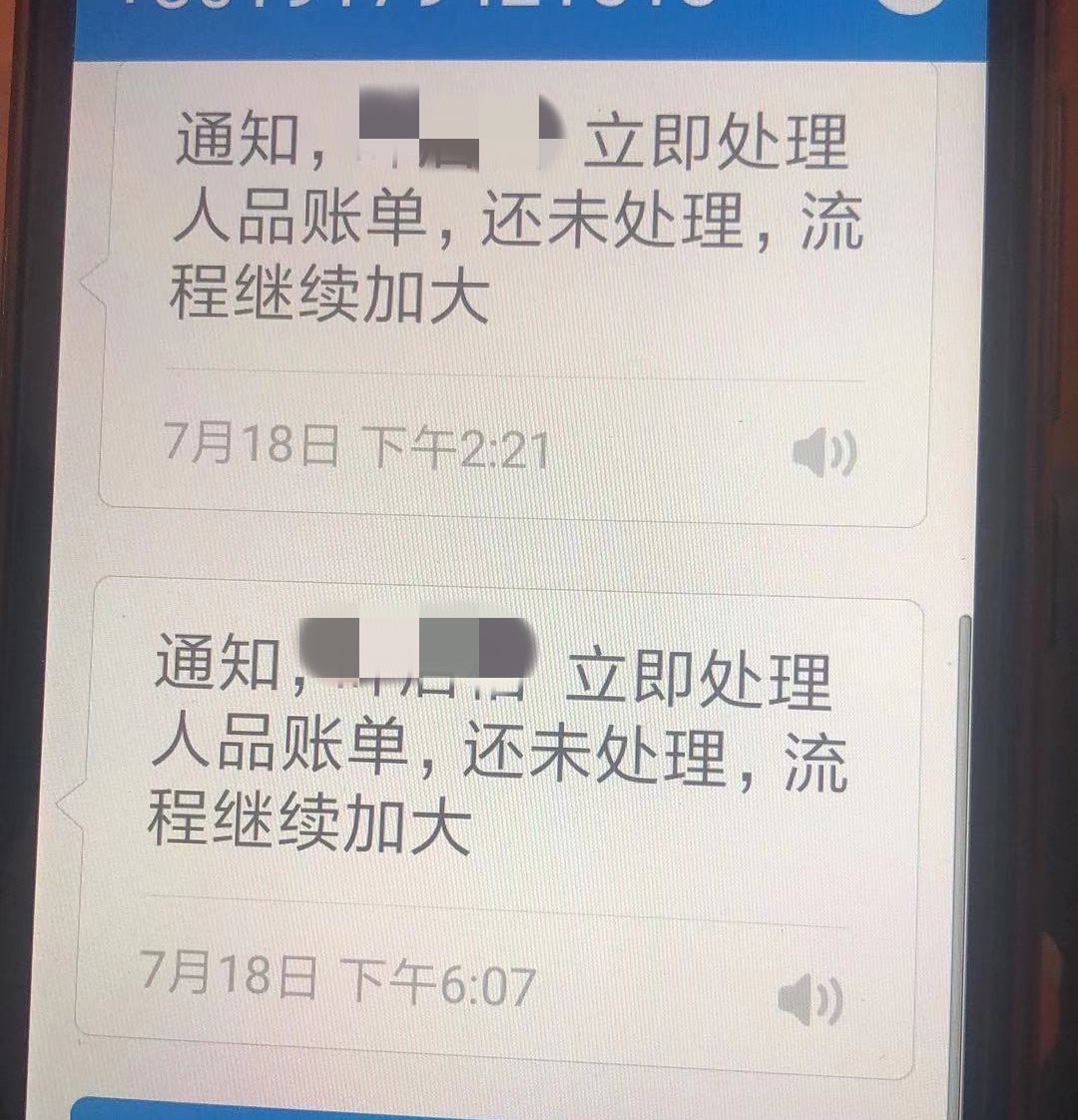 一名用户收到的催收辱骂短信。受访者供图
